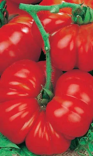 Сей томатный исполин накормит всю семью один! Ранний (90-92 дня после всходов ) индетерминантный очень урожайный (19-22кг/м?) гибрид для выращивания в открытом грунте и пленочных теплицах с очень крупными (350-400г.) ивкусными плодами. Все плоды насыщенно красного цвета, однородные. В кисти созревают одновременно. Форма плодов плоско-округлая, иногда тянут нос. Очень транспортабельны Хороши как в свежем виде, так и в соках, кетчупах и пр. Гибрид устойчив к альтернариозу и ВТМ.